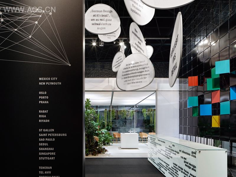 伯克哈特莱特纳继续尽可能地隐藏着新产品的技术构架,展厅有意地让透明布料重现。形式主义的系统架构与外部表面的随意结构,以及植物生长的自然与繁茂相匹配,俏皮地展示了系统架构在日常设置中的不同使用方法。