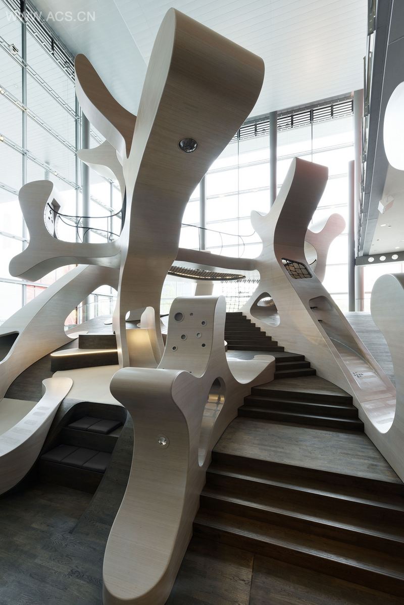 俏皮的学习景观提供了各种各样的体验,并与楼上的绿色空间展览区相呼应。MobiVersum从各个方面给所有年龄段的儿童有效地介绍了可持续发展的主题:从机动性问题,到共同学习和理解,再到烹饪课程。通过与雷娜特·齐默尔(奥斯纳布吕克大学教授)合作,创造了大型运动雕塑,其设计独特,呈现给孩子的运动技能挑战也是独一无二的。孩子可以根据自身发育水平,与不同水平的设备自由单独互动,或者与兄弟姐妹、家长一起参与雕塑呈现的运动技能挑战。