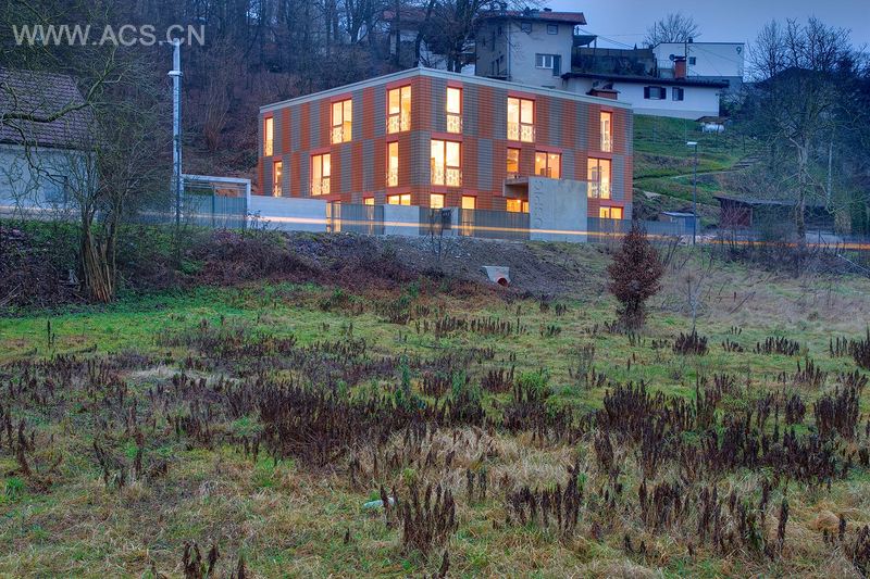 房屋外观的设计则是受到棋盘格局的启发,明暗对比的瓷砖均匀的分布在窗户周围 。栅栏和底层入口的顶棚紧挨着街道线。在房屋的一边上 ,有一个配有停车位的院子并通向公园。我们想要这个建筑给人一种宾至如归的感觉,所以我们使用了众人熟悉的材料、温暖的色调和易于理解的形式。