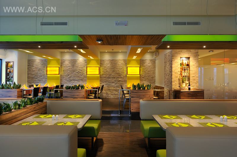 酷比斯餐馆位于Šenčur商业与贸易区的新建商用大楼酷比斯大楼里。该餐厅是一个自助餐与点菜相结合的餐厅。现代化的室内设计反映了餐厅所在大楼的建筑环境。这个让人感到温暖而友善的空间是通过功能逻辑设计与自然材料的运用而设计成的。各种不同质地的自然石与灯光效果相结合,成为了该室内设计的点睛之笔。原始的细节与颜色让整个空间的视觉效果变得更加有趣,辨识度也更高。