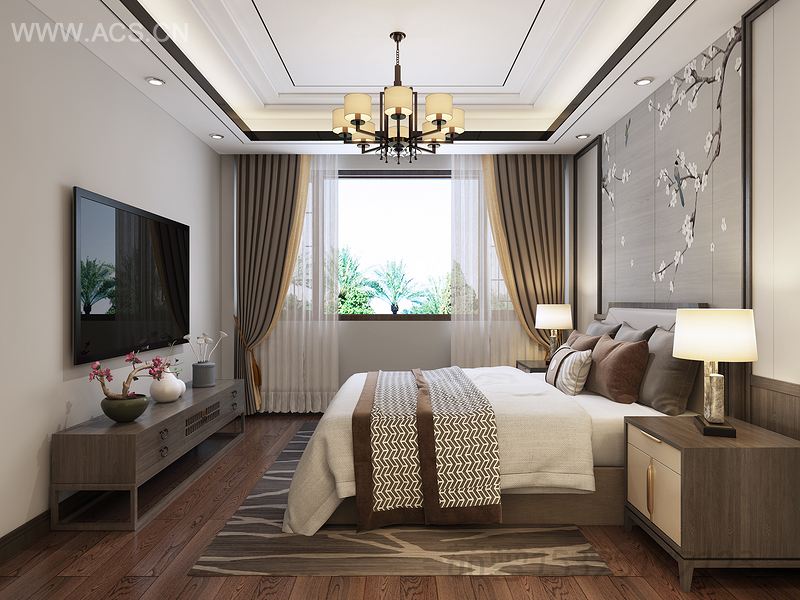 在色彩上,采用柔和的中性色彩,给人优雅温馨、自然脱俗的感觉。在材质上,运用屏风软装等,将传统风韵与现代舒适感完美的融合在一起。