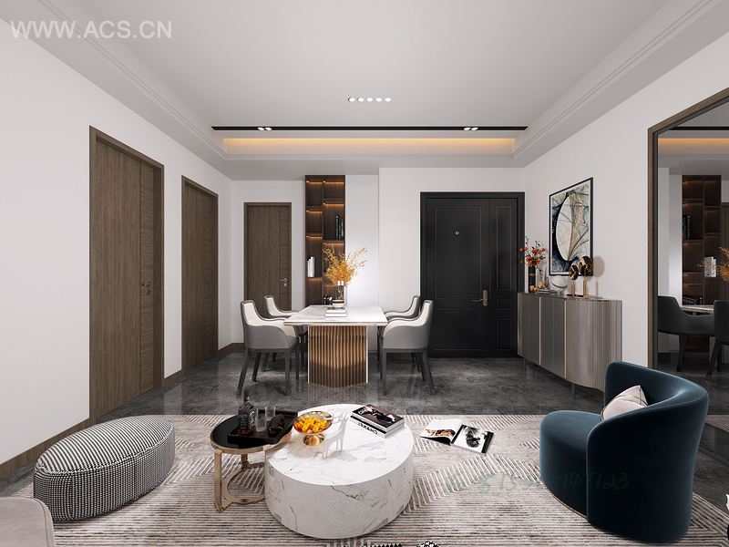 以极致的简约风格为基础,再通过一些精致的软装元素,以及材质上的奢华来提升质感,细节处精心打磨,虽无夸张造型和丰富色彩的叠加,却处处体现出细腻、考究的空间格调