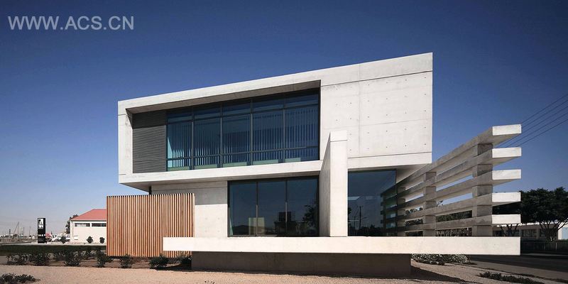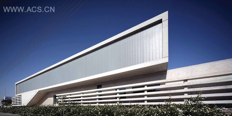 建筑立面由钢筋混凝土表层、幕墙以及U型轮廓的双层玻璃布局组成。