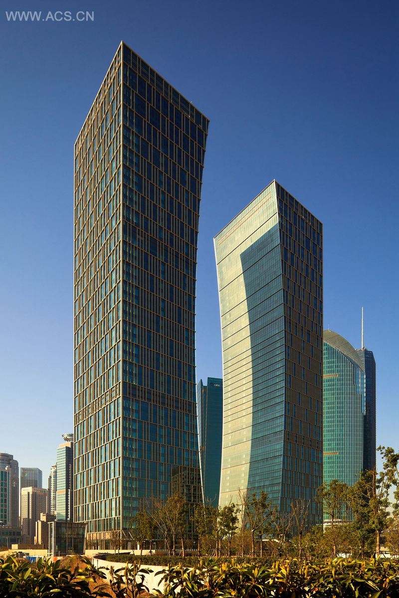 这是一个200000平方米的混合式功能建筑项目,它包含了两栋49层楼的塔形建筑,位于原来的上海船厂地址。这个项目由中信泰富集团(CITIC Pacific Group)和中国国家海运公司 (China State Shipping Corporation)共同开发,中国农业银行和中国建设银行都分别入驻了这两座塔楼,并作为它们的总部地址。这两座办公双子塔的设计形成了一个船型入口,它与滑道的轴线排成一行,将人们领向了江边的庆典公园。这两栋壮观的建筑面朝黄浦江和上海外滩,而且滑台区将会重新改造成一座新博物馆。