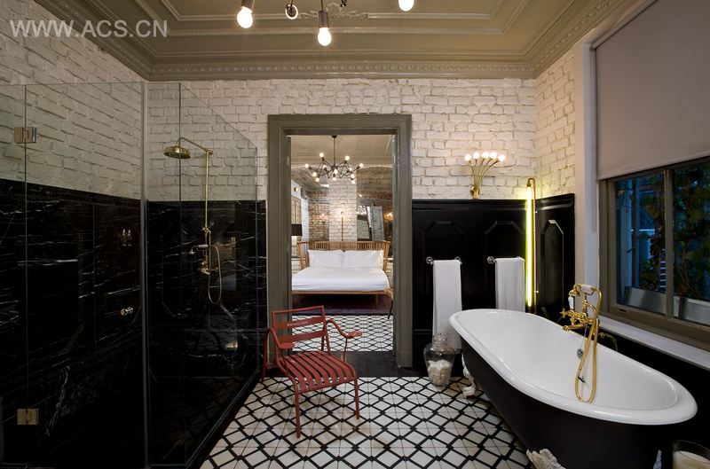 当Autoban工作室承接Tünel住宅项目时,这栋具有20世纪建筑特色的哈默森大楼就意味着需要大力革新。白色的墙面和裸露的砖墙上使用了黑色、灰色、胡桃棕色等暗色调的使用使公寓增加了阳刚之气,而公寓原来的特色也在此衬托下显得更为突出。镶木地板油上了亮黑色的油漆,周围则铺设了专门使用在伊斯坦布尔老房子的马赛格瓷砖。以上所有元素的融合,造就了这一城市中心令人惊喜的隐匿场所。