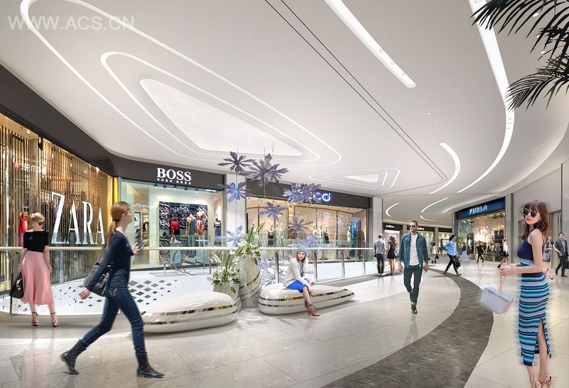 西双版纳曼城商业地处曼弄枫片区,是当地最大的时尚社区。西双版纳作为我国与东南亚连接的核心商旅城市,其打造的曼城商业中心存在着重要意义,处于热带季雨林气候下的西双版纳拥有我国1/6的植物资源,因此,我们希望打破传统商场与自然的隔绝,发挥城市独特的优势,引用“森林公园”模式进行商业设计,凸出可持续生态装饰的优势。游客可以在享受全球化购物的同时,感受游园自然带来的休闲,该商业具有的多功能一站式体验服务,使曼城为西双版纳商业的发展提供极具参考价值的意义。