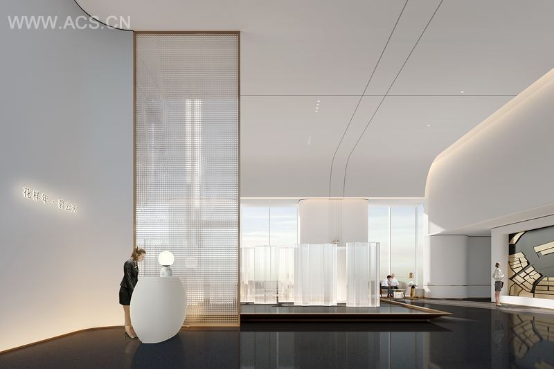 青岛花样年碧云天售楼中心采用大块面的落地玻璃窗,引入室外光景,提升空间亮度;结合青岛整体城市风格,是以轻奢风格打造的销售中心。空间中心沙盘采用低围挡的设计,让消费者更全面地观看楼房情况,墙面以纯白结合金色的金属材质,突出质感。洽谈区取消了以往传统的密集形式,分布在空间四周,让每个洽谈区留有私密性。