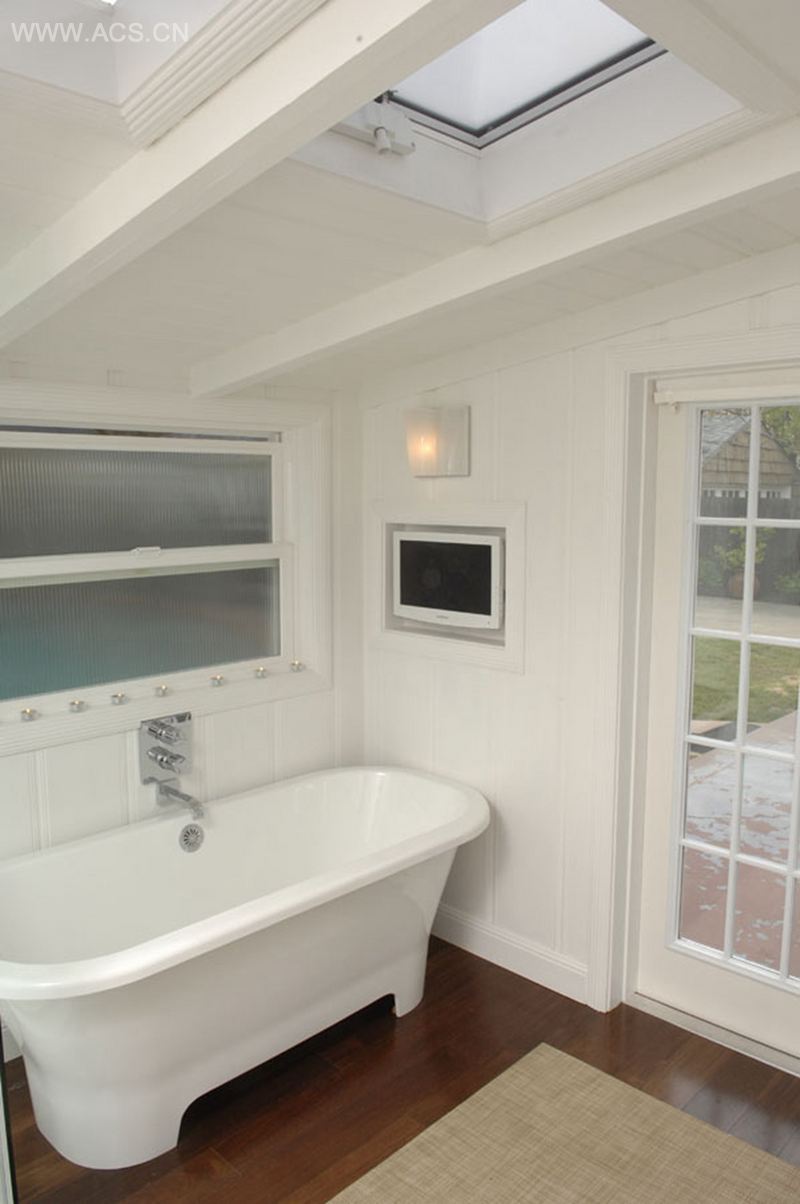 这个项目是根据网络DIY电视节目“浴室真人秀”设计的。它花了一个星期起草方案,在承包商和屋主的努力下5天就建成了。很多人认为房子是弗兰克· 威廉姆斯设计的,有许多标志性的细节。其中有一个被称为“灵感浴室”。原来的客房浴室主要由带节的松木镶板,八英寸的“匹克威克”造型从地板镶到天花板。新浴室也采用这种做法,这样新旧浴室混合的天衣无缝。同时,我们设计了一个自定义的双重化妆台,它可能会在未来成为家具产品。浴缸是现代经典脚印造型,选用英国进口的火山灰岩材料。天窗的设计也是浴室的特色之一,可以让光直接照射板栗色的地板上。