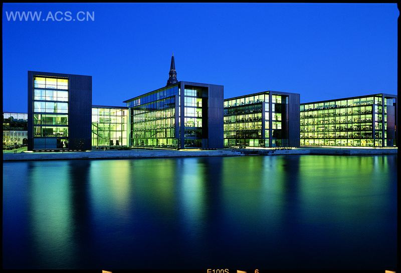丹麦总部,是Henning Larsen建筑事务所的Christiansbro地区规划的一部分。该规划起于1995年,涉及船厂旧址的重新开发。精致的巴洛克式教堂,教堂花园,城东、城西的海港入口,均形成互动,使建筑显得与众不同。