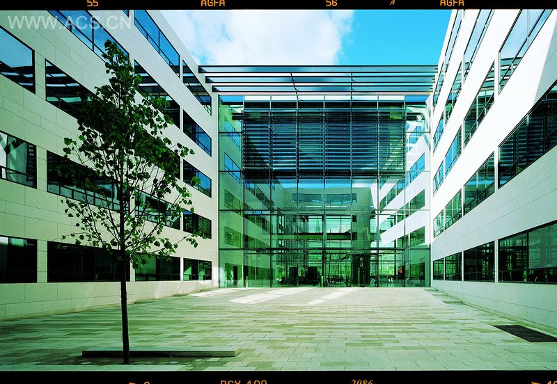 建筑由中型楼体和人行桥连接。人行桥又将新总部与原有办公室相连接。综合体内部有20%是个人办公室,80%是公共办公室。餐厅覆盖三层楼,其中一间三倍高的房间朝向海港。
