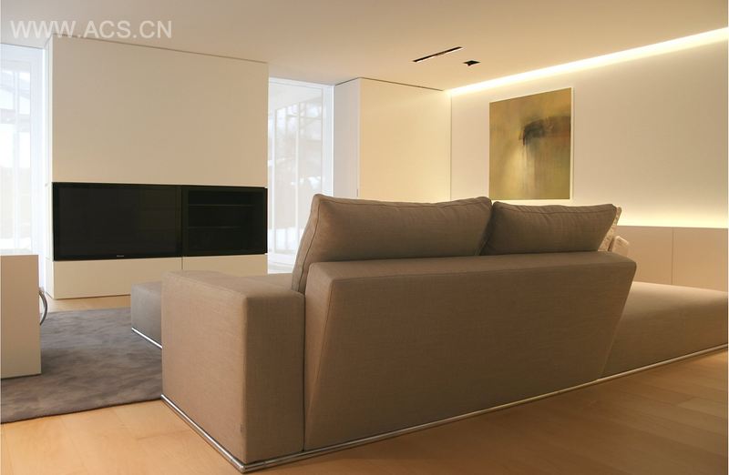 为了使房子拥有充足的光线,原有的外墙被一个定制的硅结构幕墙取代,该幕墙底部和顶部分别与地板和天花板平齐,而玻璃门则为室内外建立了相应的联系。由于冬天的温度很低,项目的采暖方案结合了地板辐射采暖、沿幕墙地板采暖、透视燃气壁炉和木壁炉供暖。