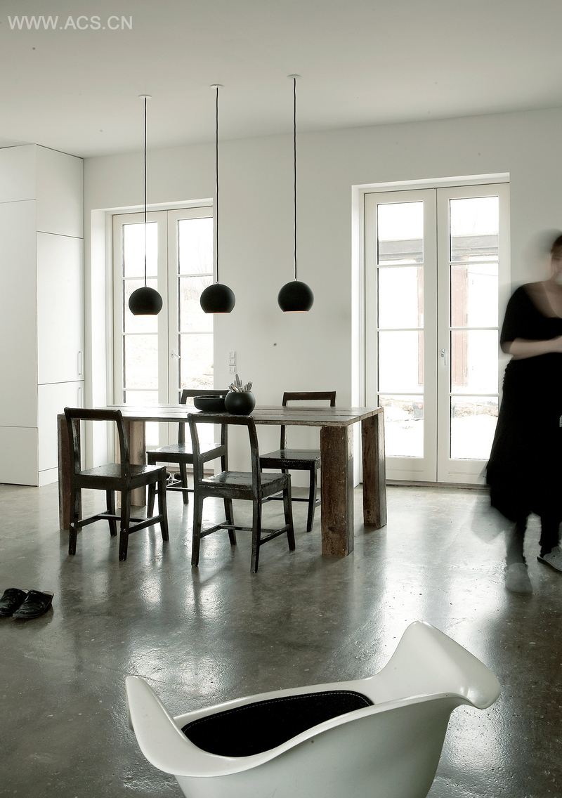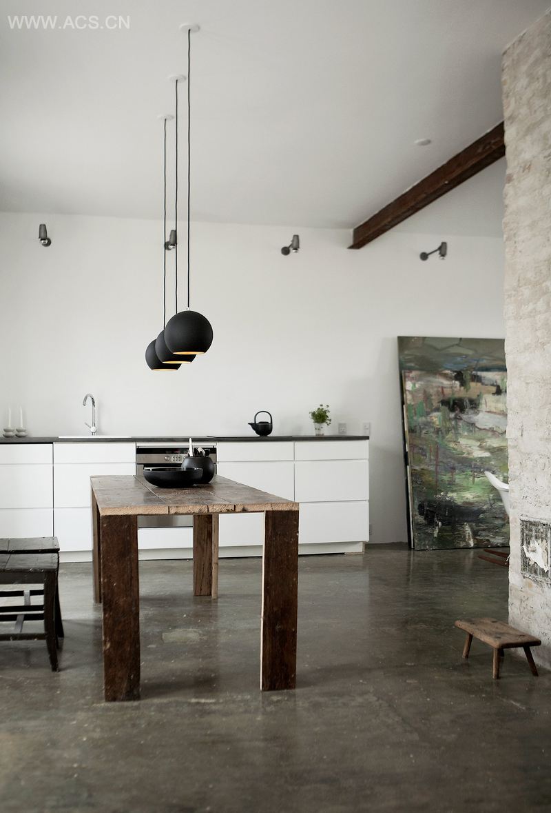 初始设计灵感来源于原始的材料,砖墙、混凝土地板和支撑二楼的巨大钢梁结构都是项目启动时的一部分,设计师决定将这些元素和改建一楼时发现的旧木梁定义为房子的特征。原有的地板被全部拆掉,并在铺设新地板之前安装了地暖设备,而地暖设备的安装使得设计师可以拆除一楼壁挂式采暖设备,并将墙面建造成没有镶板,轮廓清晰的白色表面。
