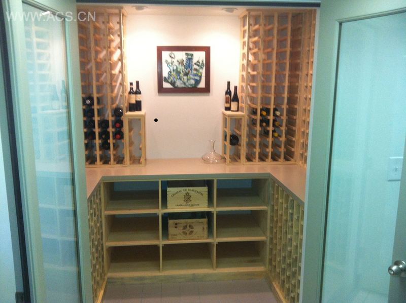 为了方便使用,酒窖建在厨房的右侧,有一个8英尺×2英尺的直通内阁通往储存间。为了保持原有的宽度,深度增加3英尺,我们建造了一个可容纳800瓶酒的可供人走近的酒窖。为了增加便利性,较低的酒架有双倍的深度来储藏更多的酒。
