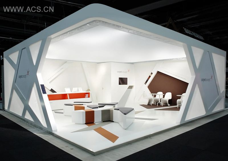 这个展台的设计难点在于它位于斯德哥尔摩的一个小地方里。在领先全球的“2010科隆国际办公家具展”中,这个展台的最大面积达到了250平方米。创意地毯有限公司通过这个可重复使用的模块化展台再次向人们证明了它是创新设计的领导者,并尝试用新的方式来增强品牌效应。