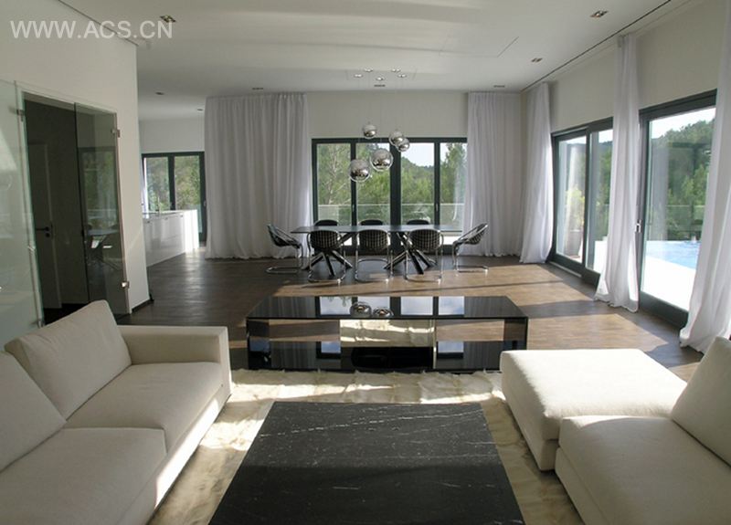 邻近Casa Son Vida 1的是Casa Son Vida 2。它是简化了的盒子结构。在一块很大的自留地上设计建造一座600平方米的房屋,这一建筑将成为隐密性极高的私人居所。尽管这一现代家居是白金级别墅中最不前卫的,但它仍旧不同于岛屿上典型的地中海式房屋。