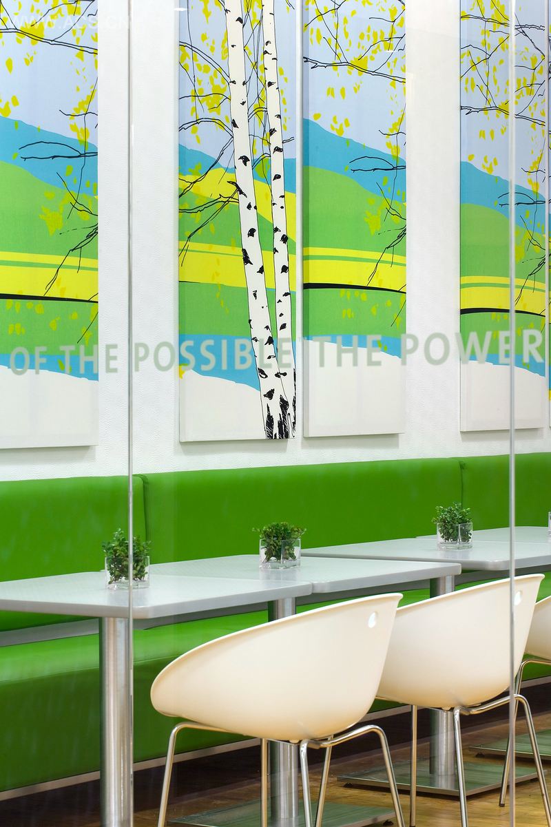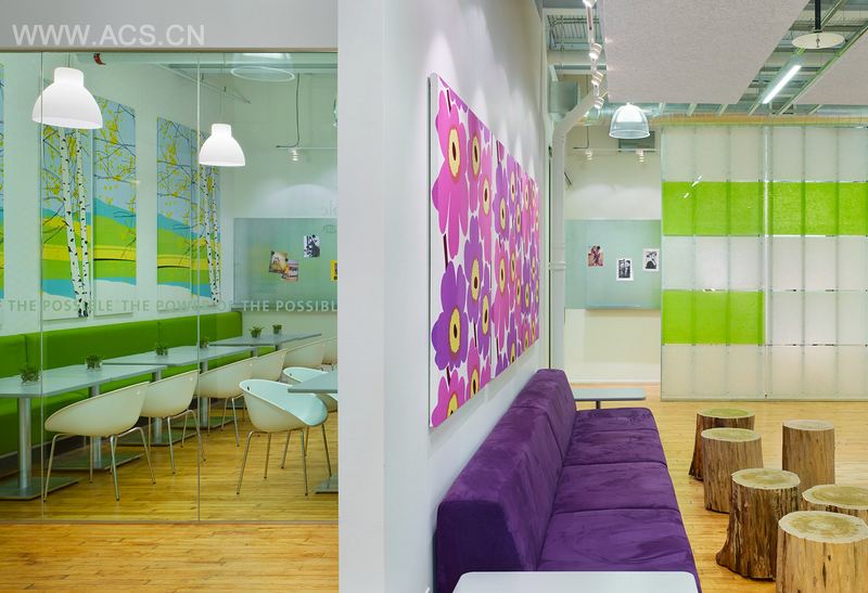 Power,指为客户创建具有影响力的空间;Punch,指激活空间的强烈色彩碰撞;Pop,指贯穿空间的70年代复古面料和励志名言。